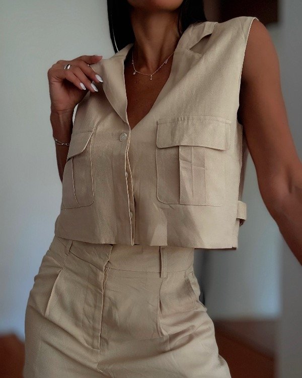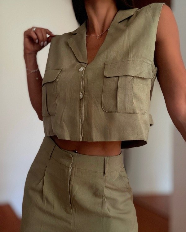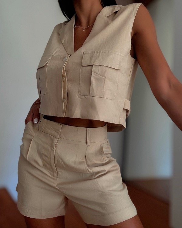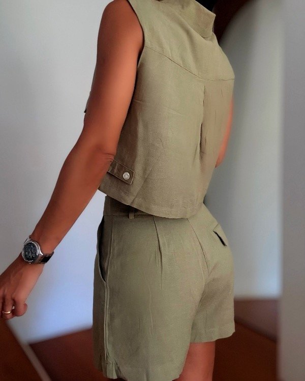 Conjunto de lindo de camisa sin mangas con short larguito.