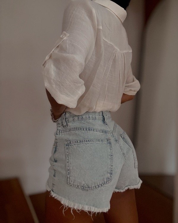 Short de jean rígido tiro medio desflecado.