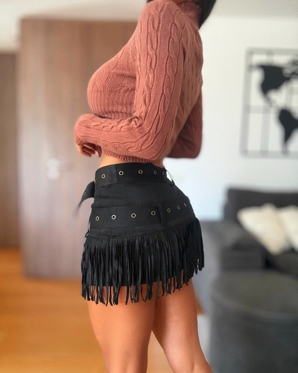 MINI IMPORTADA DE GAMUZA CON FLECOS, CINTOS Y SHORT DEBAJO.