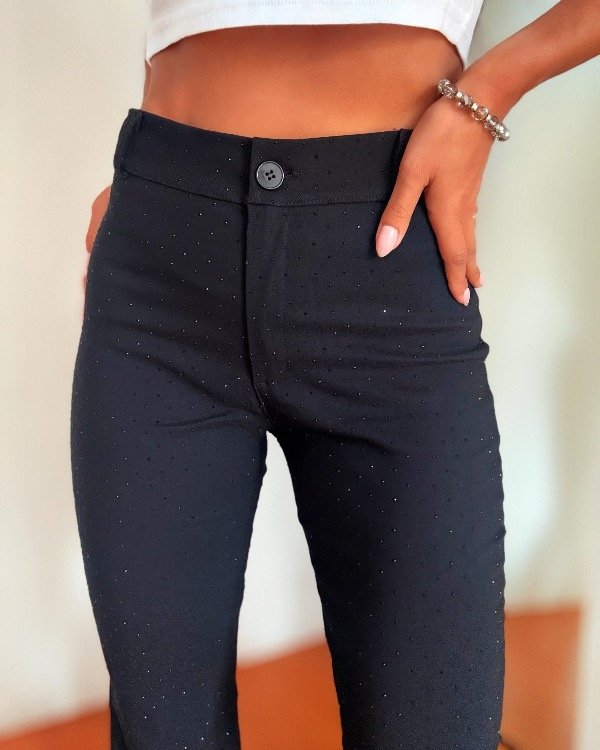Pantalon oxford de bengalina elastizada con aplique de strass.